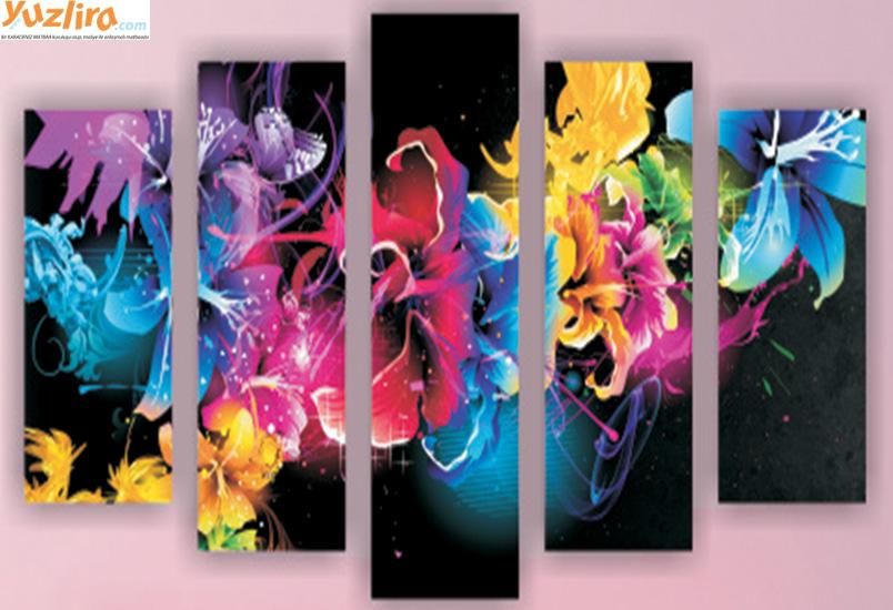 • Rengarenk Çiçekli Mdf Tablo 100x60cm